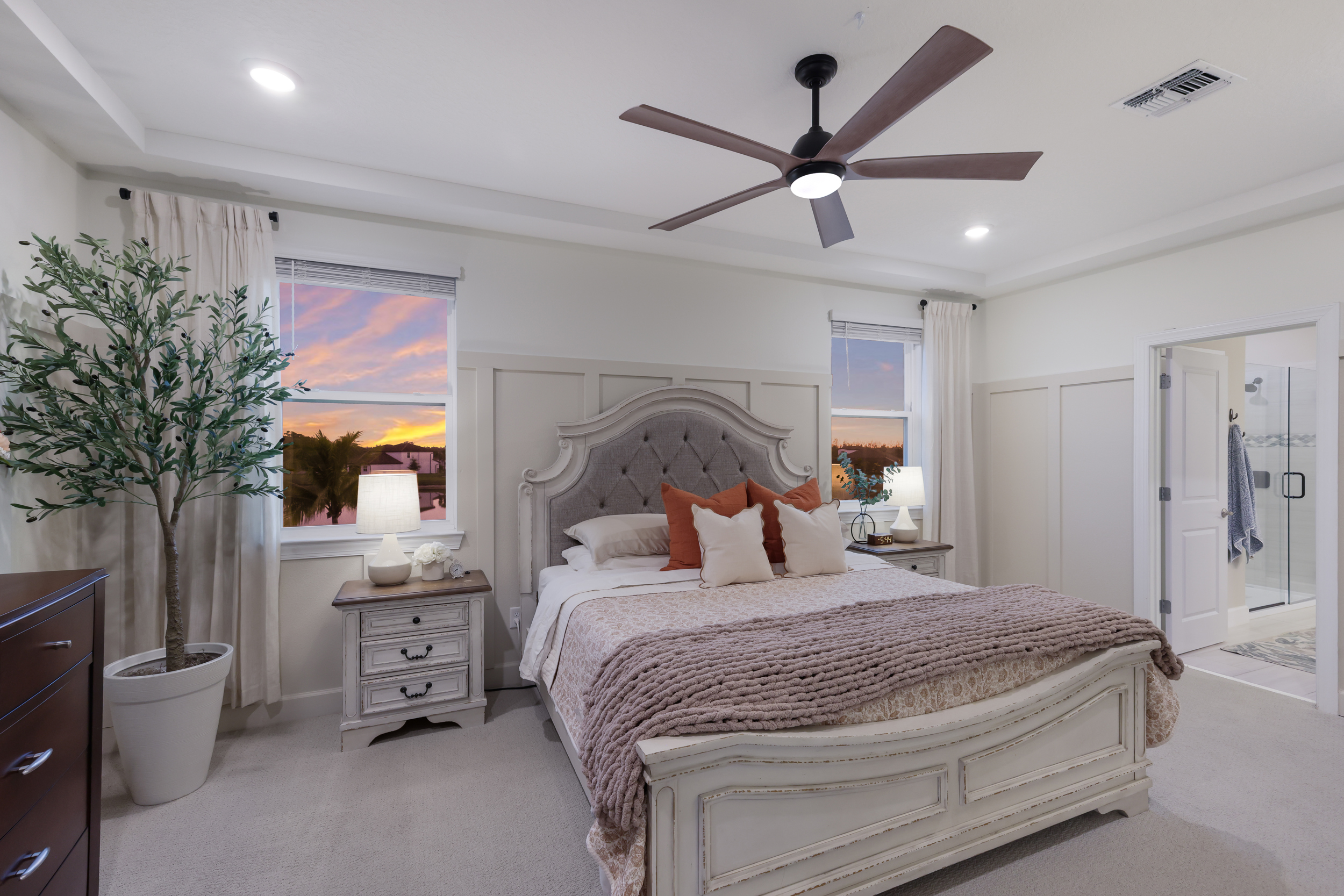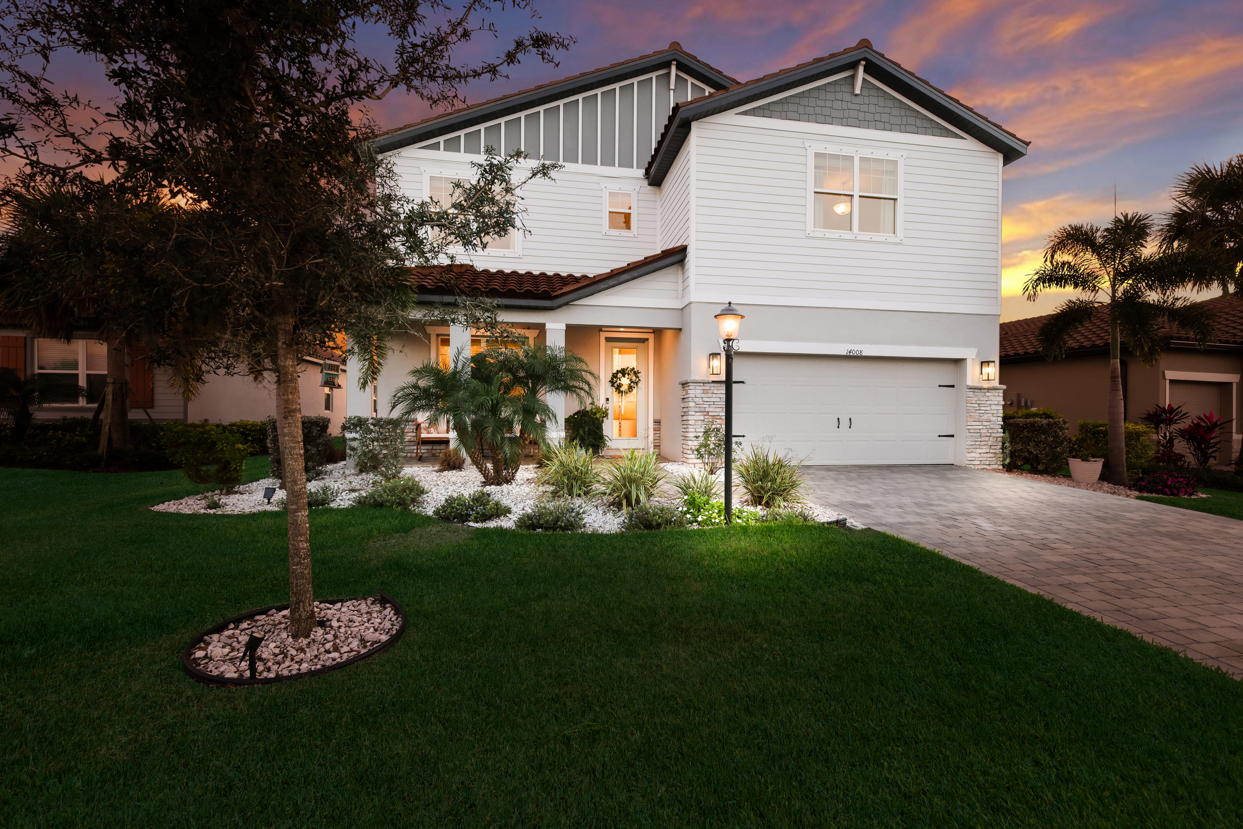 This STUNNING five bedroom, three bathroom Meritage home offers 2,988 sq. ft. of thoughtfully designed living space with a two car garage, located within the sought-after gated community of Savanna in Lakewood Ranch. From the moment you enter, you’re welcomed by a BEAUTIFUL entryway featuring TRAY ceilings and a striking modern wood ACCENT wall, setting the tone for the rest of the home. A versatile front room can be used as a FORMAL dining area or flex space and offers lovely views of the outdoors. The open concept floor plan flows seamlessly into the kitchen and living room combination, making it perfect for entertaining. The kitchen is a chef’s dream with UPGRADED cabinetry, TILED backsplash, BUILT-IN oven, cooktop, stainless steel hood, stainless steel appliances, an island with seating, modern pendant lighting, and a walk-in pantry. Just off the kitchen is a casual dining area with sliders overlooking the pond and backyard. The living room is both inviting and serene, featuring windows with lanai views and another MODERN WOOD ACCENT wall. The first floor also includes a convenient bedroom or office, along with a beautifully upgraded full bathroom featuring a modern vanity, tub/shower combo, stylish wood detailing, and DESIGNER wallpaper. LUXURY VINYL plank flooring runs throughout the entire first floor. Upstairs, updated WOOD STAIRS AND RAILINGS lead to an open media room, ideal for movie nights or a game room. The primary suite is bright and spacious, with pond views, tray ceilings, a wood accent wall, and an ensuite bath offering dual sinks and a walk-in glass enclosed tiled shower. Three additional generously sized bedrooms share a full bath with dual sinks and a tub/shower combo. The laundry room is conveniently located upstairs and includes cabinetry and a utility sink. All bedrooms feature upgraded carpet. Step outside to a PEACEFUL, fully FENCED backyard with a covered paved lanai, sealed pavers, and tranquil pond views, creating the perfect setting for entertaining, relaxing, or enjoying breathtaking sunsets. The home is enhanced by UPGRADED LANDSCAPING with PALM TREES and white STONE accents, adding to its curb appeal. A new humidifier system has also been installed. This move-in-ready home is truly a GEM, with every detail thoughtfully designed. Savanna is a fabulous community with LOW HOA resort-style amenities such as a clubhouse, swimming pool, state-of-the-art fitness center, basketball courts, playground, dog park and numerous walking paths. Lakewood Ranch is known for their A+ rated school system and is perfectly located just a short ride to downtown Sarasota, St. Pete, world class shopping, fine dining and the FAMOUS Gulf beaches! Don't wait to make this your HOME and begin your FLORIDA Lifestyle!